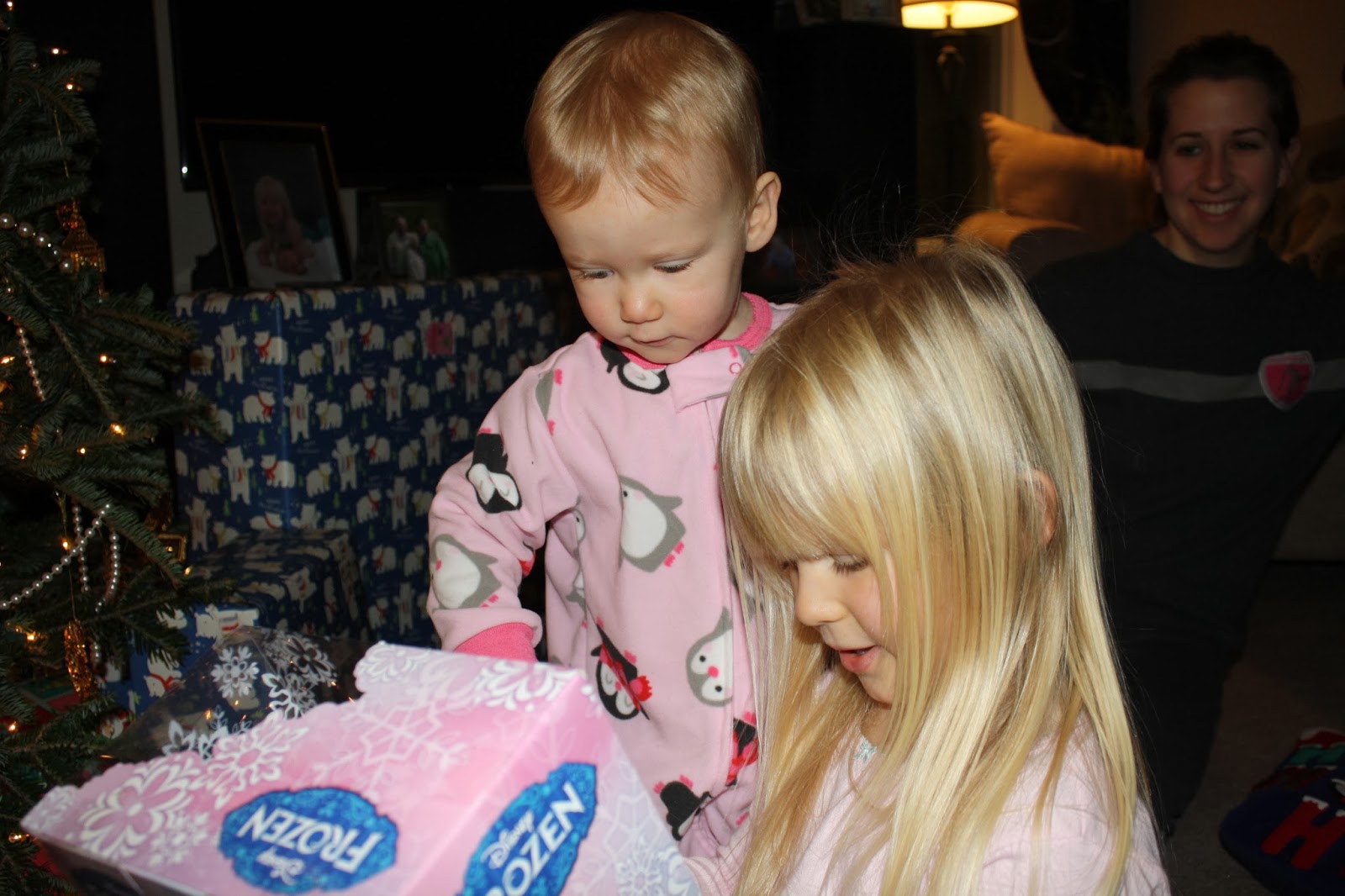 | Christmas morning checking out the Elsa Frozen doll |
